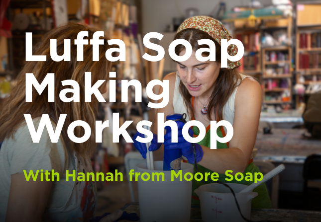 In this guided session, Hannah of Moore Soap will demonstrate the cold process soapmaking method using luffa gourds grown right here at our Austin facility. Participants will create their own personalized luffa soap bar using farm-dried botanicals and essential oils, while learning the fundamentals of soapmaking to continue the practice at home.