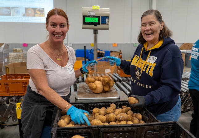 “It felt good,” she said. “We packed about 7,600 pounds of squash and potatoes into 10-pound bags — those will go out to families. It’s really good to know we had that kind of impact.”